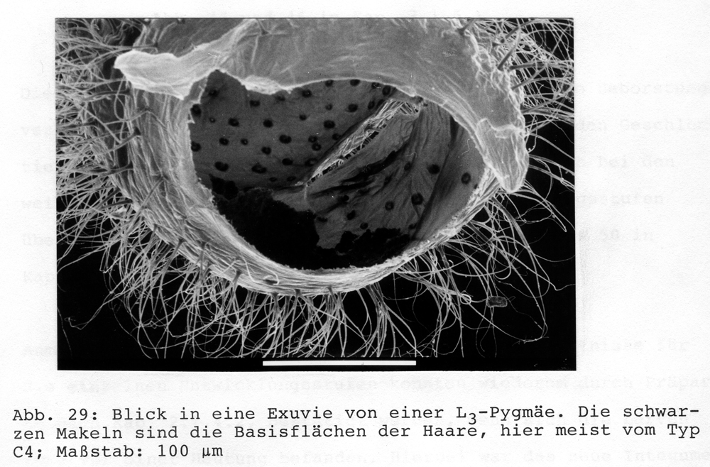 Die Larven wurden mittels Raster-Elektronenmikroskop (SEM) abgebildet. Die hervorragenden Aufnahmen wurden möglich, indem man die weichen Larven zunächst etwas vorfixiert hat,