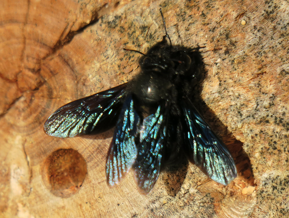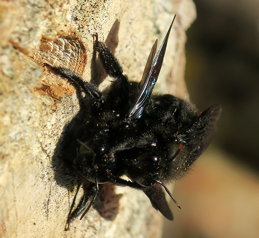 Nach langem Regen- und Schneeregen ist heute der erste sonnige Tag. Und schon erwachen Frühlingsgefühle, bei den Holzbienen meiner Bienen-Favela!