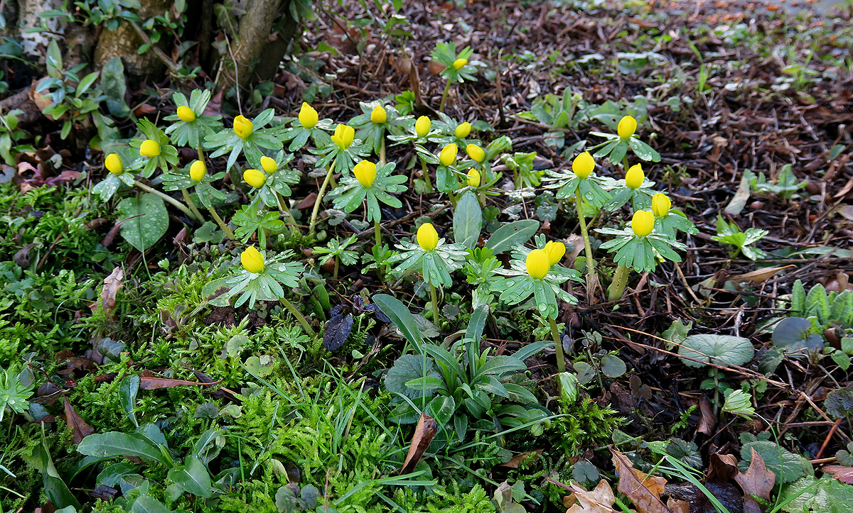 Winterlinge (Eranthis hiemalis) haben sich ans Licht geschoben