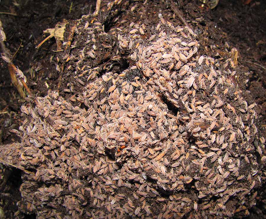 Hunderte von Asseln strebten aus dem frisch umgesetzten Material nach oben, kletterten auf herausragende Halme, purzelten wieder herunter und krabbelten erneut hoch. – So hatte ich das noch nie gesehen! (es erinnert an den Betrieb, wenn aus demselben Komposthaufen Lasius niger zum Abflug startet) :)