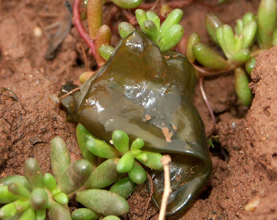 Diese Cyanobakterien namens Nostoc leben da an manchen feuchteren Stellen, meist auf offenem Boden.