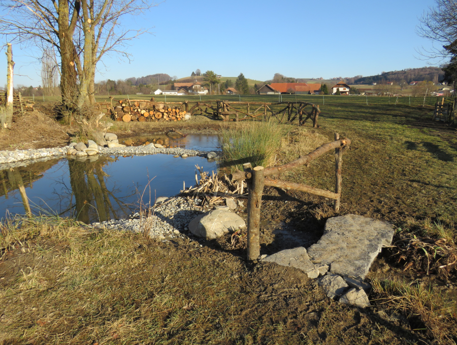 während den anderen Teil neu eine Teichfolie ganzjährig vor dem Austrocknen bewahren soll (wie es früher der Fall war).