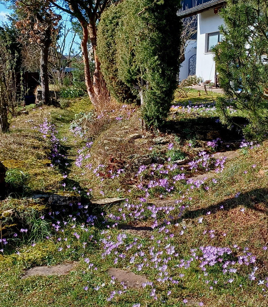 Das sonnige Wetter treibt die Frühblüher heraus. Aus der Fülle der Elfenkrokusse bei mir im Garten will ich nur ein Bild herausgreifen: