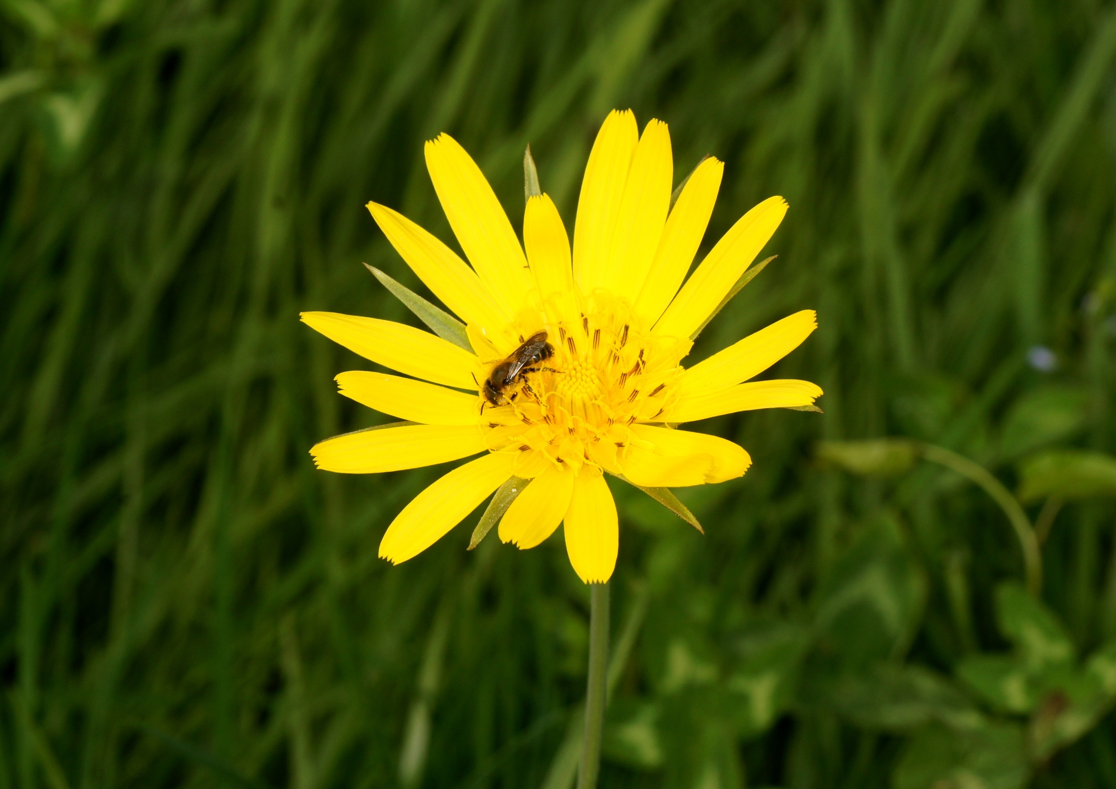 Der Wiesen-Bocksbart im Englischen Rasen? Nein, in der Wiese beim Boro. 3 Jahre habe ich Samen ausgesät, heuer erstmals Erfolg: Tragopogon pratensis, vermutlich subsp. orientalis: Die Blüten hatten sich um 11:00 (10 Uhr MEZ) bereits geschlossen! Die schönen Samenstände sind kugelförmig geformt!