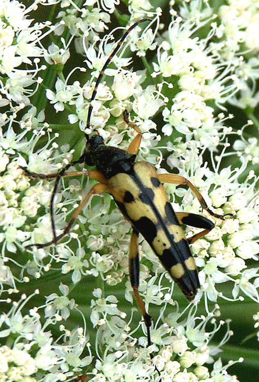 Hier mal noch ein „Sommervogel“ :) , ein Käfer, der im Sommer vor allem auf Doldenblüten zu beobachten ist: Der Gefleckte Schmalbock. Früher kannte man ihn unter den Namen Strangalia maculata oder Leptura maculata, jetzt heißt er Rutpela maculata. Öfter mal was Neues! :roll: