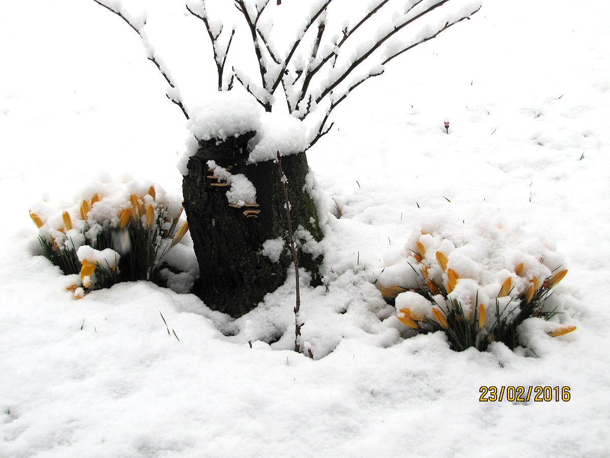 Futter für die Brut steht schon bereit. Den Schneefall von gestern haben die Krokusse bestens überstanden. :)