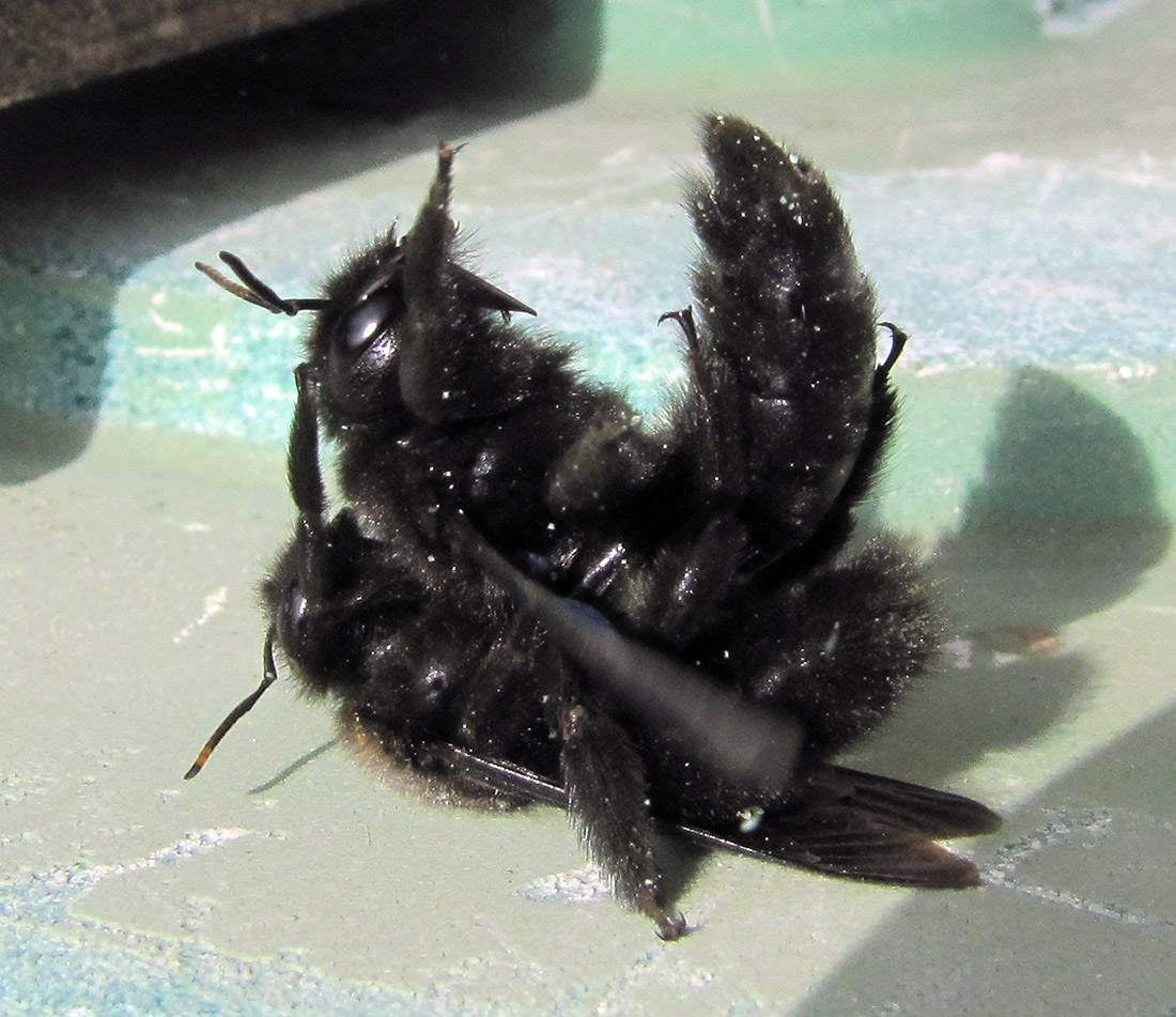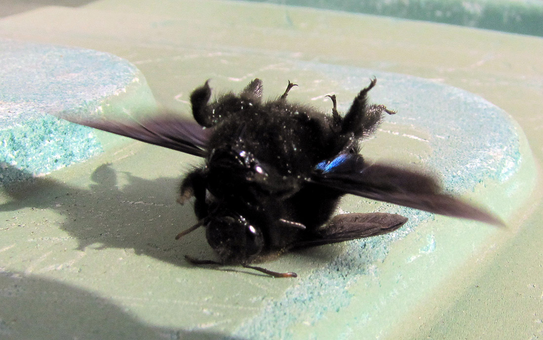 Wie bei Xylocopa violacea üblich fliegt man erst mal weg, landet gelegentlich irgendwo