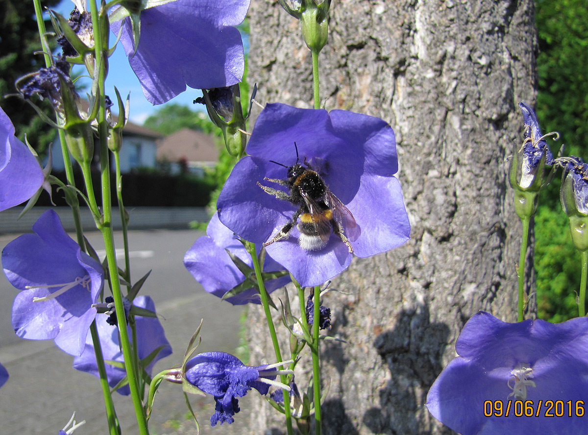 ... voll Pollen, hat diese Hummel in der Glockenblume. :P