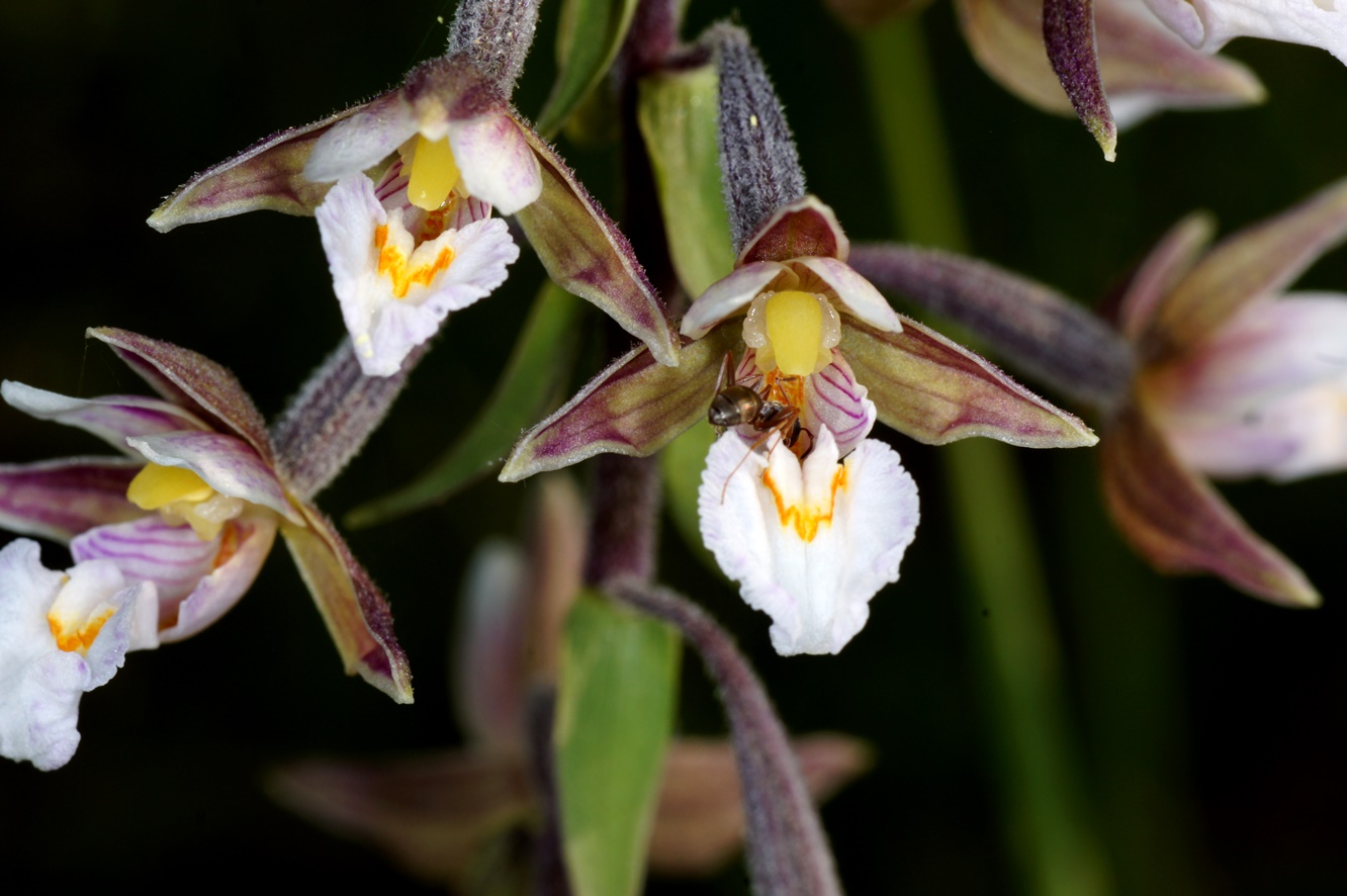 Die wunderschöne Blüte der Sumpf-Ständelwurz (Epipactis palustris) mit Formica fuscocinerea. Die Ameisenart entdeckte ich auf zahlreichen Blüten der Orchidee, vielleicht trägt sie zur Besteubung bei.