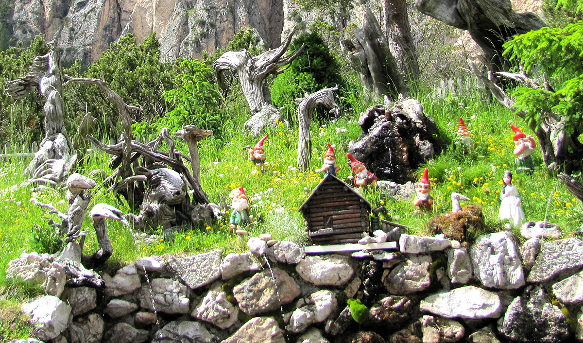 Südtirol, 4.7.2016, am Ju de Valparola, Capanna Alpina, 1720 m. Die Betreiber des Rifugio sind sichtlich sehr findig beim Sammeln,