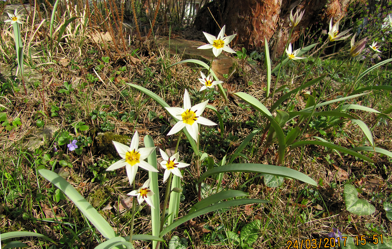 Blützeit Anfang März, eigentlich ein Vorfrühlingsblüher. Ich habe sie mittels Samen auch im Garten aufgezogen und besitze außerdem eine weiß blühende Variante und eine gelb blühende Art (ich glaube aus Kalifornien). Im natürlichen Verbreitungsgebiet sind sie schon abgeblüht, bei mir im Garten blühen sie derzeit. So weit ich beobachten konnte, werden die Blüten hauptsächlich durch Hummeln bestäubt. Näheres hier: https://de.wikipedia.org/wiki/Hunds-Zahnlilie