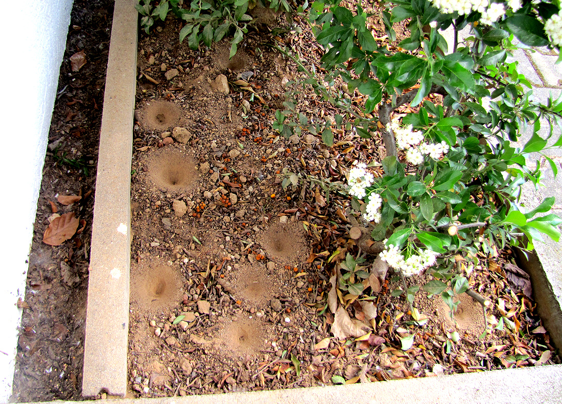zum Haus noch zusätzlich. Selten waren die Trichter der Ameisenlöwen am Hauseingang so groß wie jetzt bei der Hitze!