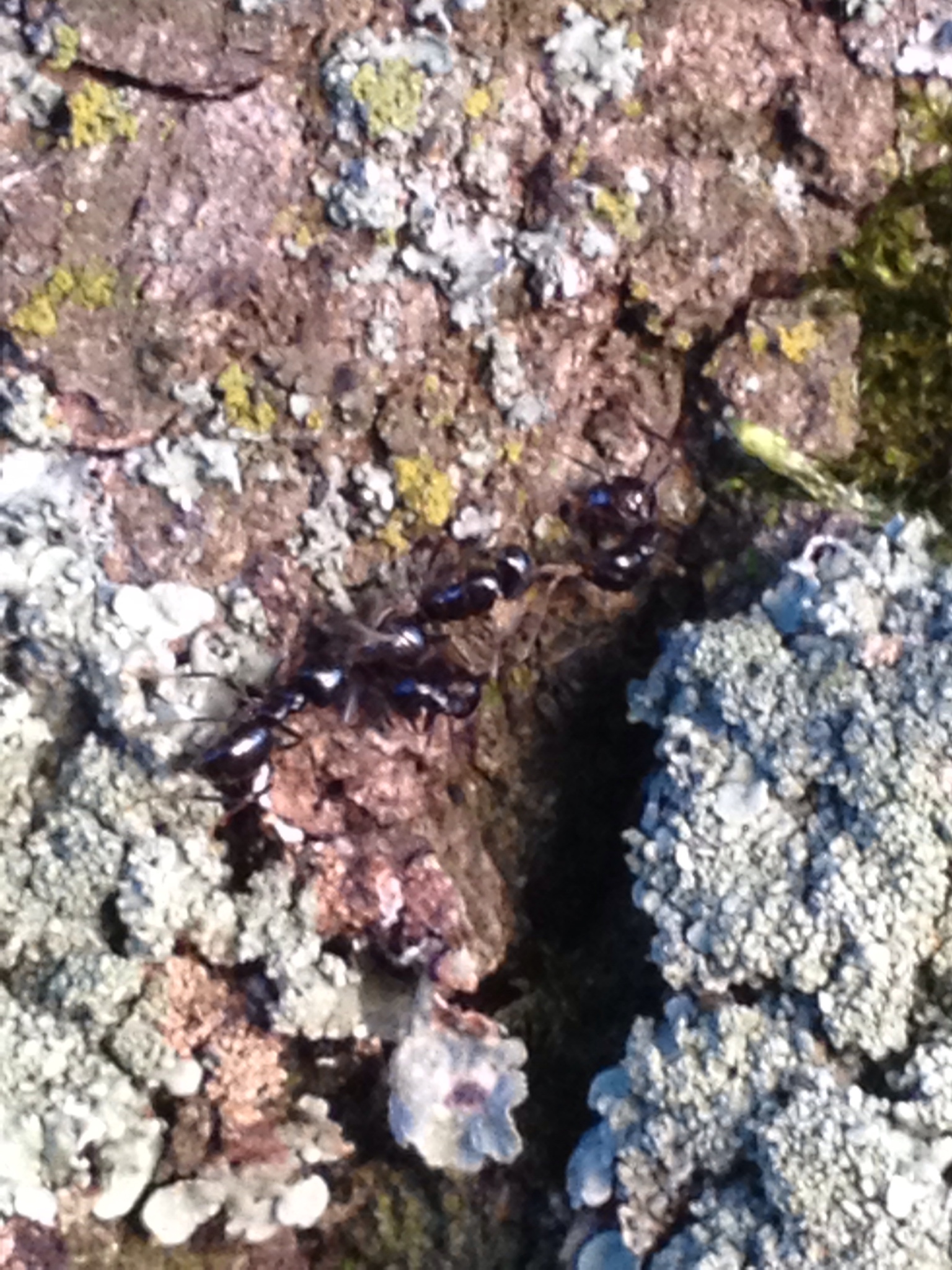 Auf dem Mauerpfeffer in meinem Steingarten habe ich heute winzige Ameisen entdeckt, auf den ersten Blick dachte ich an Plagiolepis sp. Die Fotos zeigen deutlich Lasius-Arbeiterinnen, eindeutig Pymäen, ich denke von Lasius niger; dort gibt es nur L. niger u. L. emarginatus. Ich habe ein Exemplar abgemessen: 2 mm, vielleicht 2, 1mm, mehr nicht!