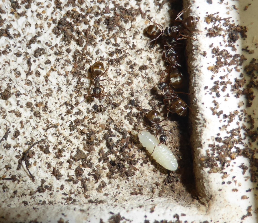Diese leben seitdem ohne Gyne fröhlich vor sich hin und haben nun mit der Larvenproduktion begonnen!