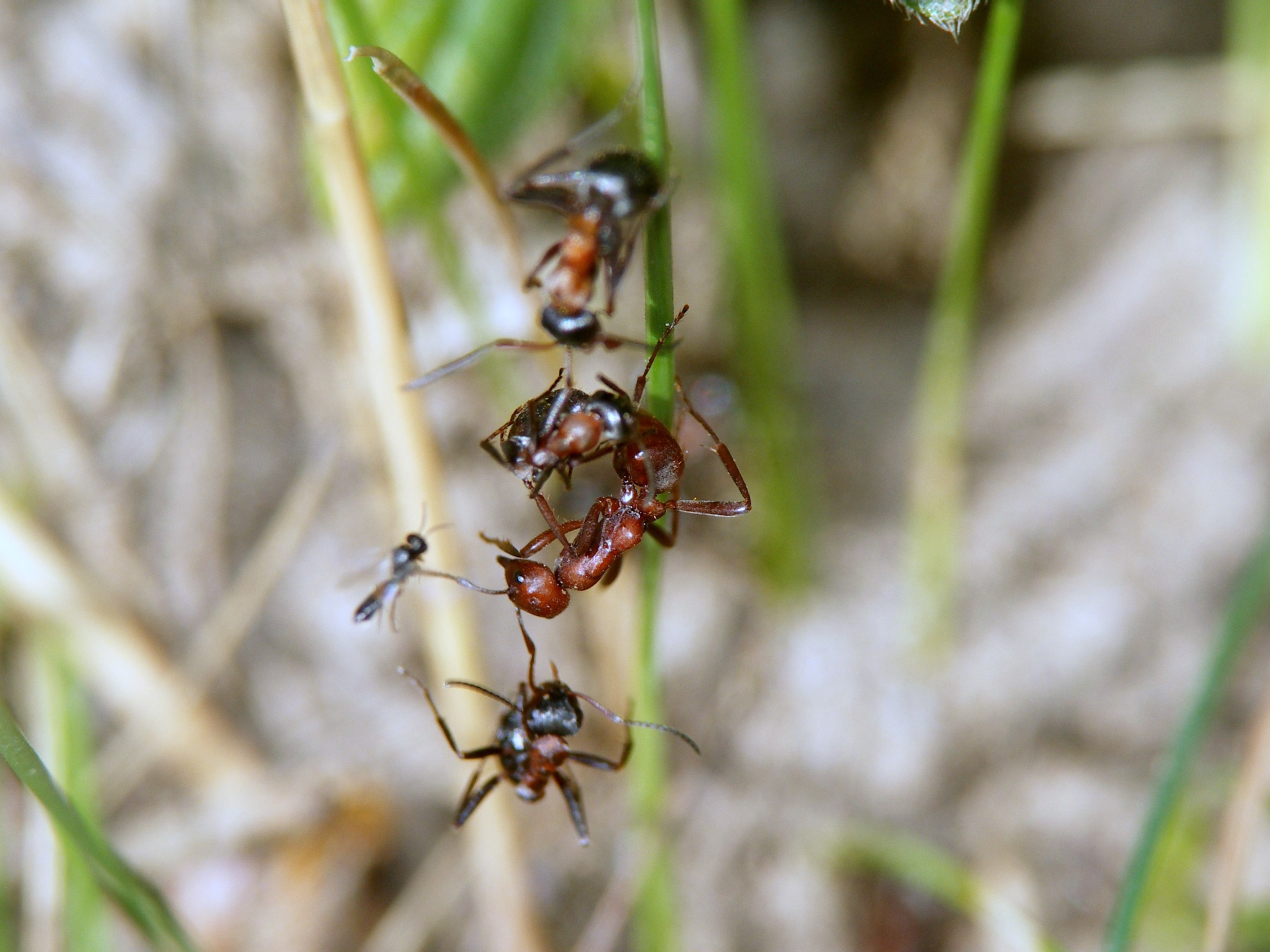 Formica (Serviformica) cunicularia nistete ja jeweils in auffälliger Nähe der fliegend und sitzend fotografierten