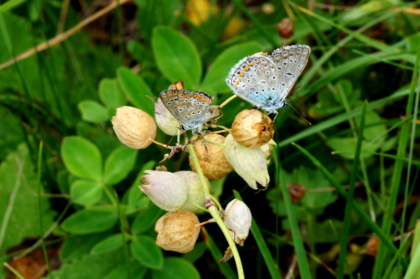 Bläulinge auf Fruchtkapseln der Lichtnelke