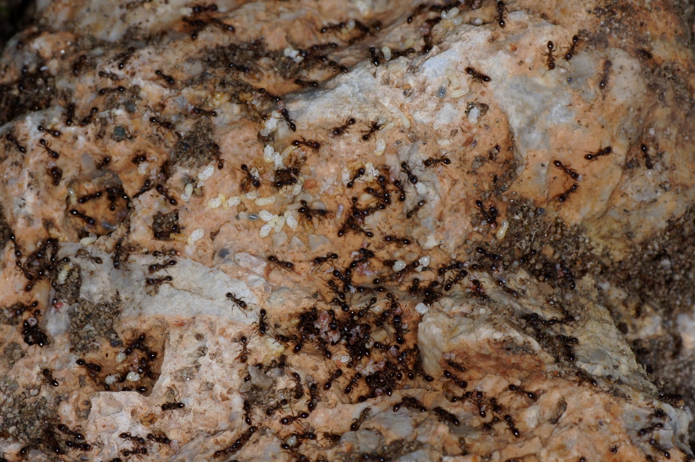 zahllose Tetramorium cf. caespitum-Nester. Hier gibt es auch ein Nest mit Strongylognathus testaceus, das ich diesmal nicht wiederfinden konnte