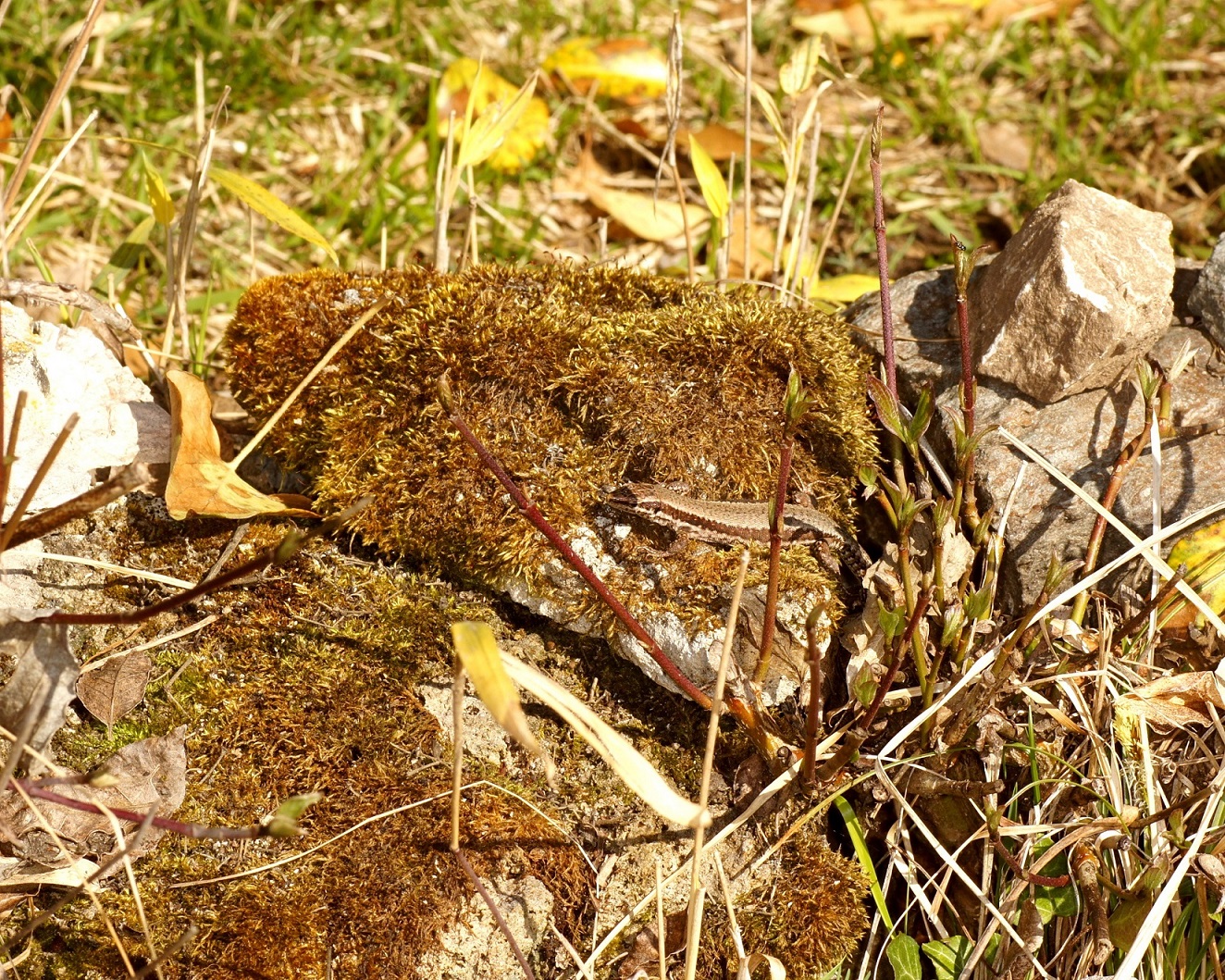 Heute am Morgen hatte es nur 0,3°C, etwa um 10:00 (Sonnenzeit 09:00) bei 5°C (im Schatten gemessen) entdeckte ich gleichzeitig 3 erwachsene Tiere, diese wurden innerhalb von 4 Min. bei der Sonnung fotographiert. Jetzt frage ich mich, ob es bei diesen Echsen kein Territorialverhalten gibt und ob generell Jungtiere in der Nähe toleriert werden?