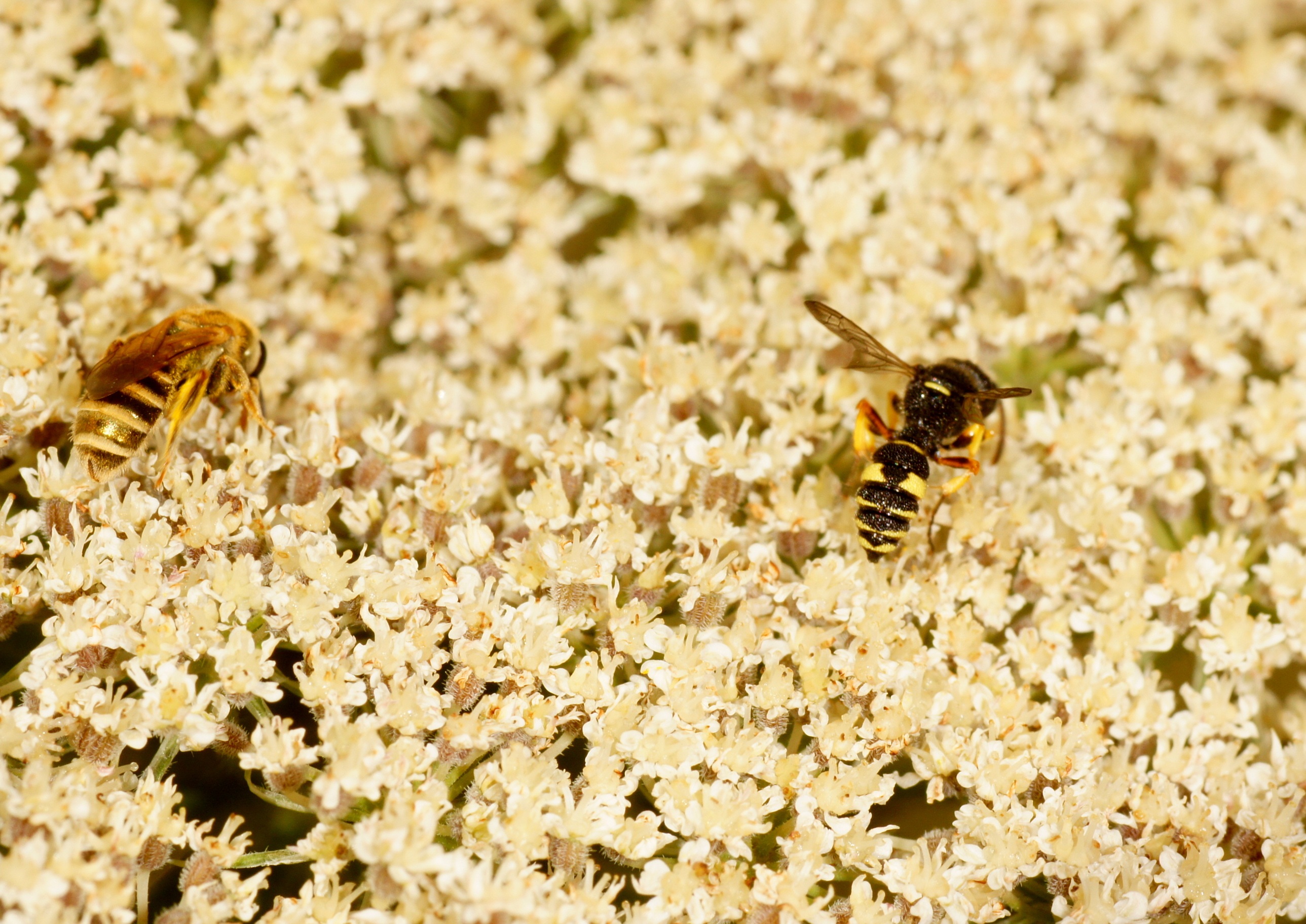 kleine Wildbienen und eine Wespe