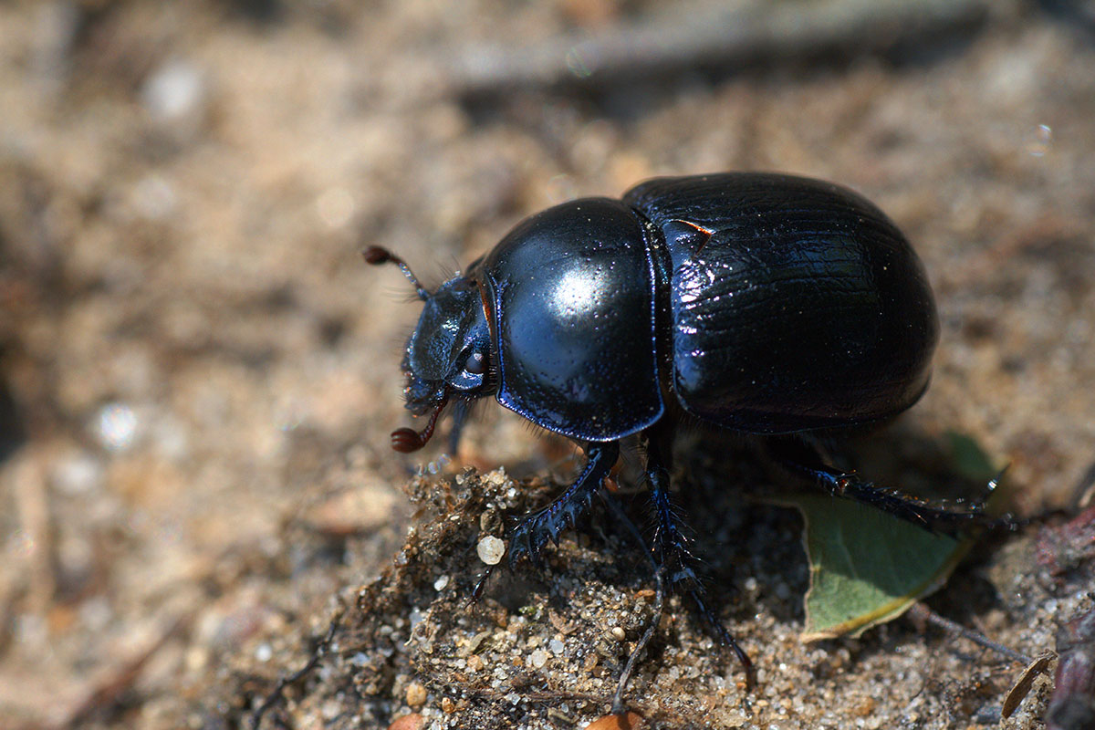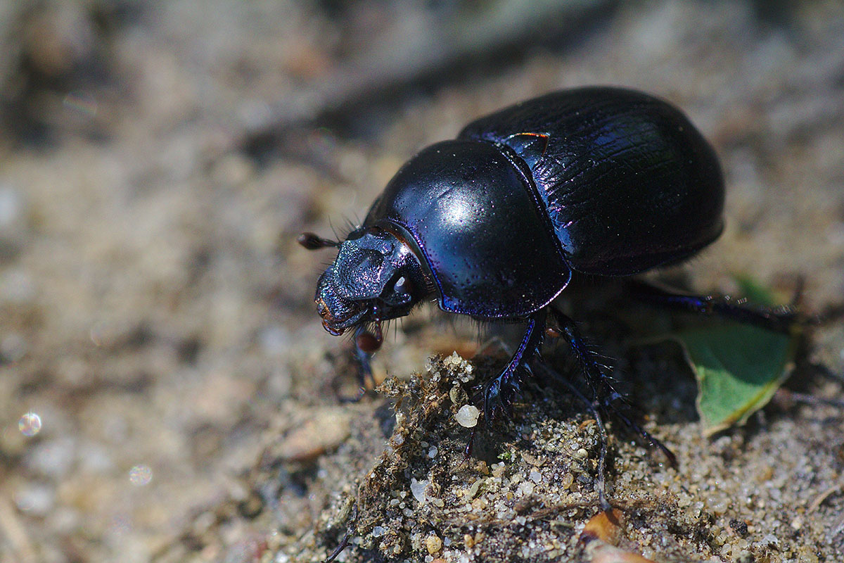 Einige Mistkäfer konnte ich im, durch Pferde aufgelockerten, Waldboden finden.