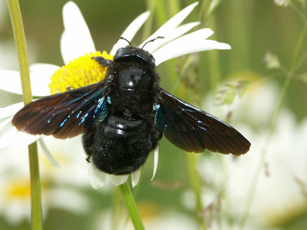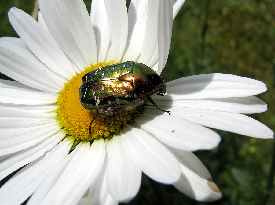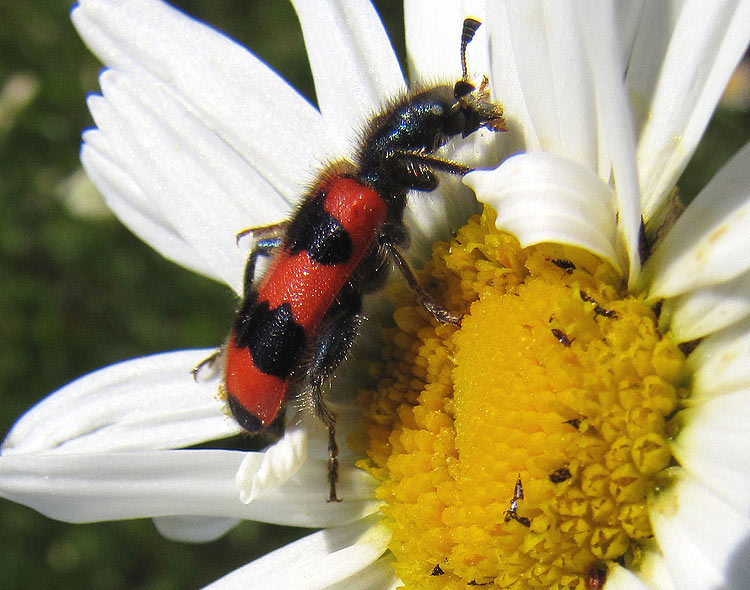 Alljährlich bieten Margueriten reichlich Kraftfutter, proteinreichen Pollen, für Hymenopteren, Käfer und anderes Kleingetier! – Gestern (5. Mai) in meinem Garten: