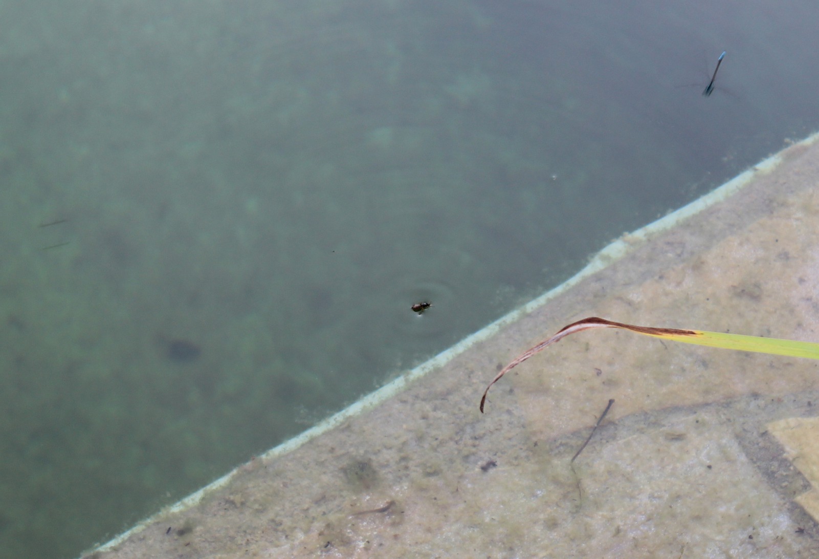 Bemerkung: Gesamter Garten voller Gynen und Männchen beider Arten, kein schwärmendes Nest sichten können, im großen Schwimm- und Naturteich ertranken viele Männchen und auch vereinzelt Gynen (s. Bild)
