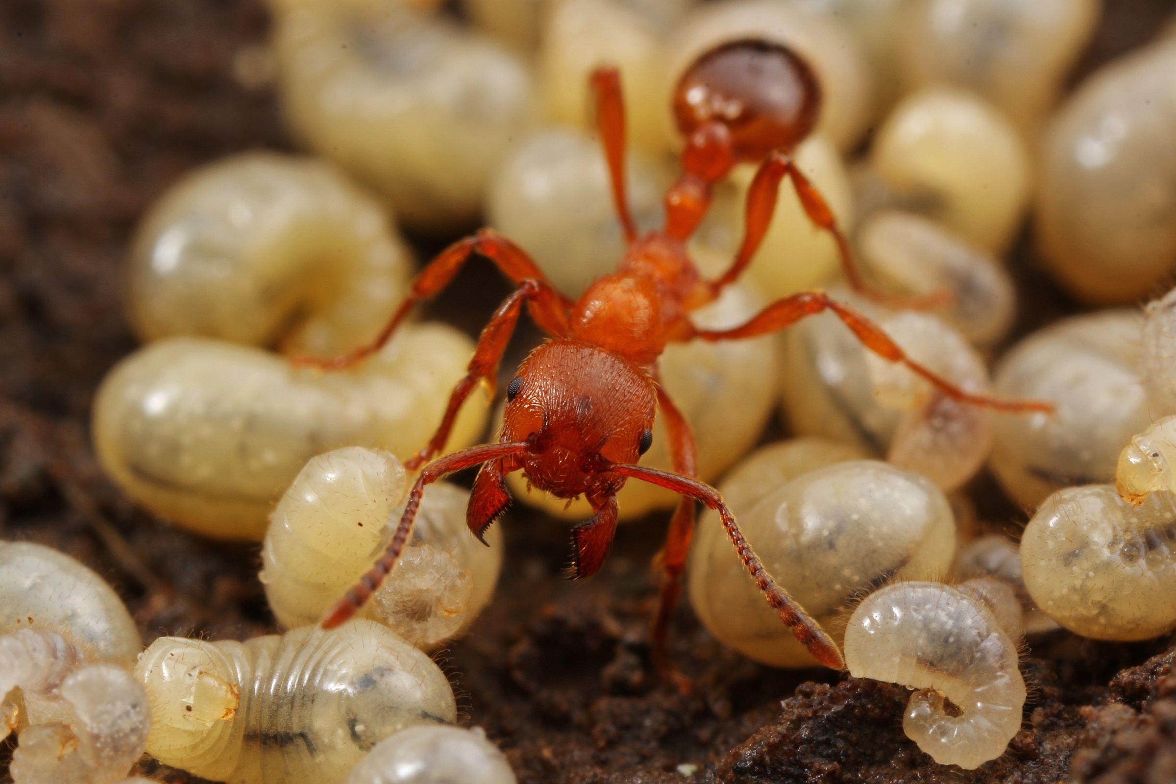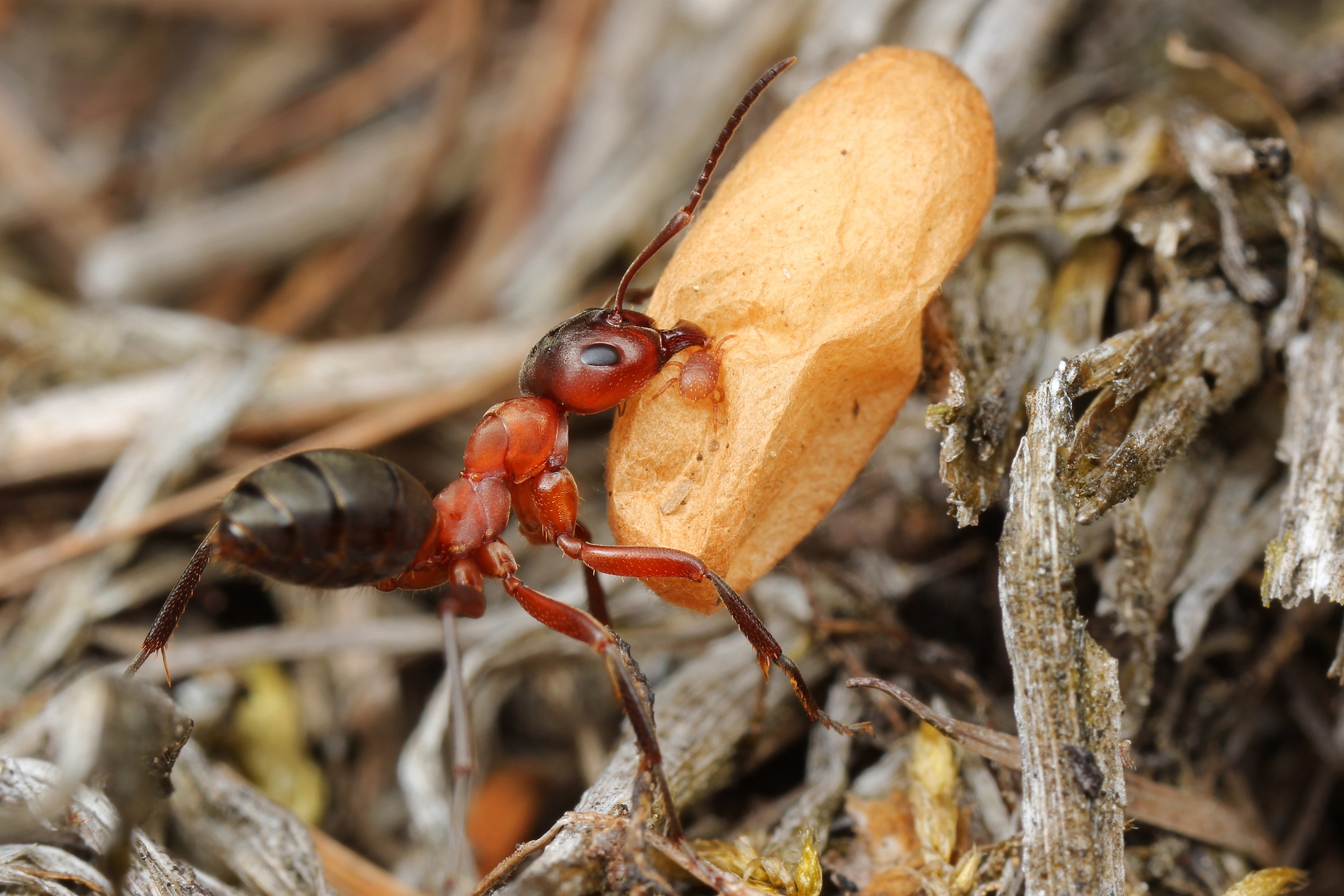 Formica sanguinea schleppt Geschlechtstierpuppe und Milbe!!