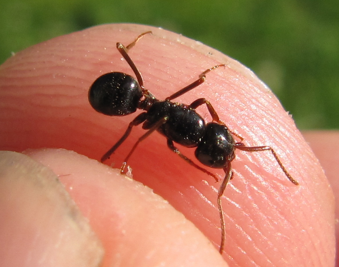 Wenn man gerade mit Lasius s. str., Serviformica spp., Polyergus rufescens, Tetramorium sp. etc. beschäftigt ist, dann sieht man erst: ein wunderschönes, "riesiges" Insekt, man würde gleich auf 2 cm Länge schätzen; aber das ist unmöglich, wie wir wissen, 17 od. 18 mm sind aber "drinnen"!
