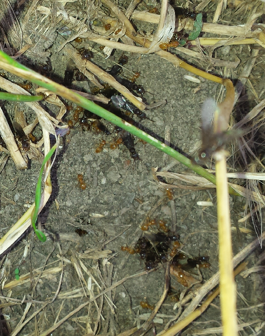Edit: Nachtrag auf Hinweis von Boro (danke!): Bei den Manica rubida Gynen ist es natürlich auch möglich, dass sie bereits geründet haben und auf Nahrungssuche sind. Mir sind zwar 3 Gynen auf relativ engem Raum begegnet und nun regnet es. Aber ich habe heute keine geflügelten Tiere gesehen und Manica hat in der Gegend sicher auch bereits Mitte Mai geschwärmt.