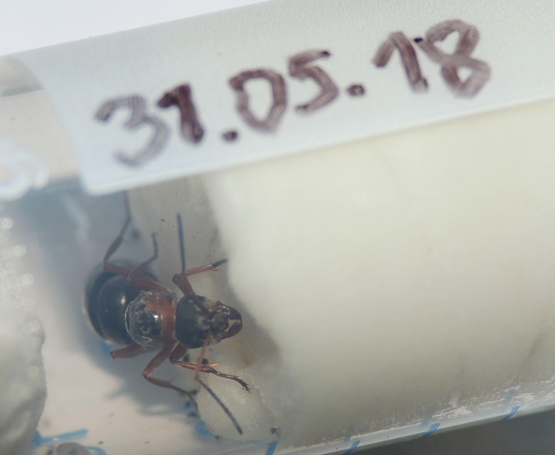 Ort: Süd Berlin / Stadt-Garten / Im Pool / " ertrunken" mit Salz und Wärme wieder fit bekommen. Habe sie mit einer Lasius niger Pygmäe und einer noch nicht ausgehärteten Lasius niger + Brut in ein Reagenzglas gepackt. Bis jetzt scheinen sie sich alle 3 aktzeptiert zu haben. ( hatte noch eine ganz junge Gründerkolonie aus 2016, wo ich die 2 entnommen habe.)