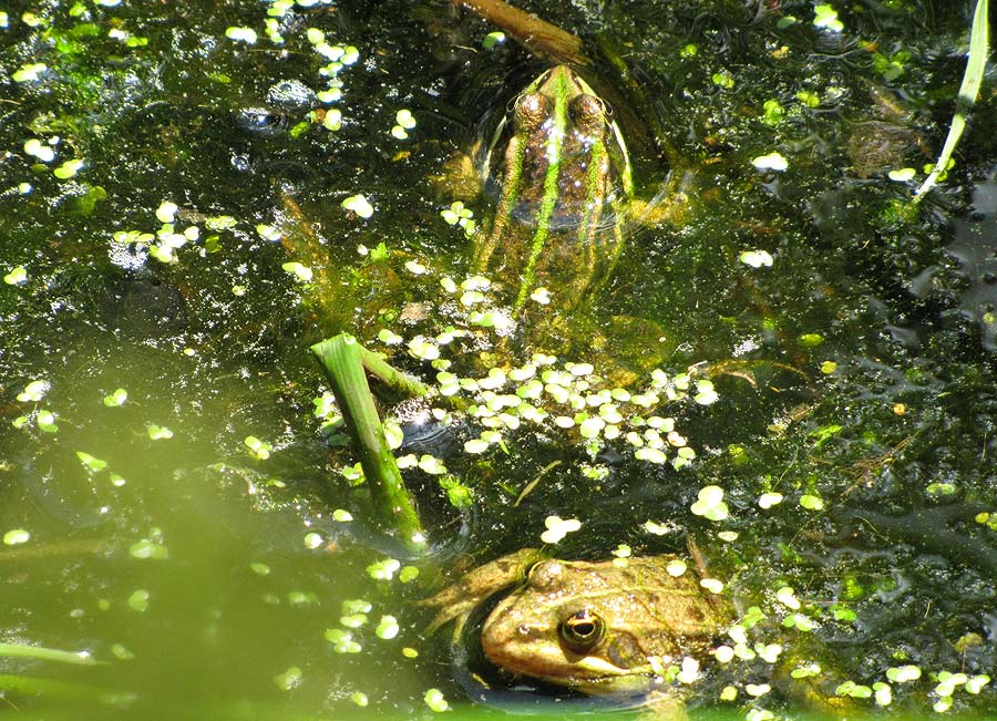 An den Tongruben flogen zahlreiche Großlibellen, im Flug natürlich nicht sicher bestimmbar. Im Wasser suhlten sich Grünfrösche (Pelophylax „esculentus“)