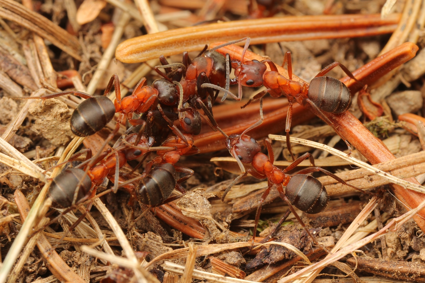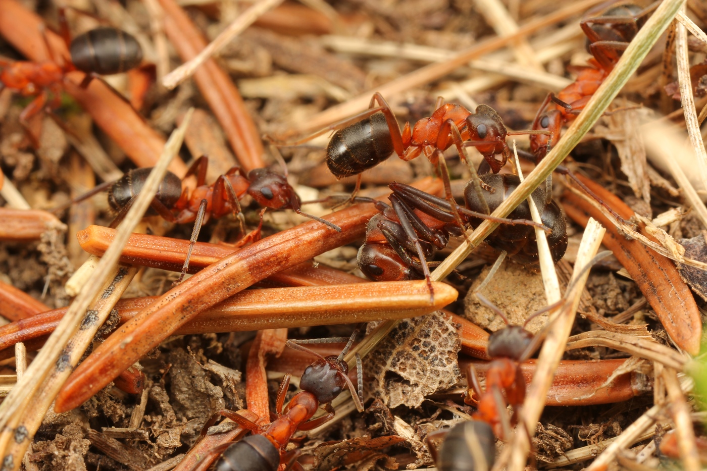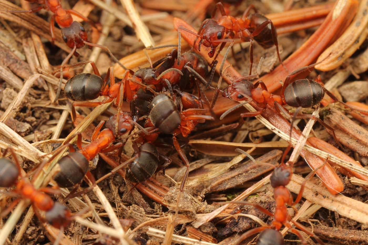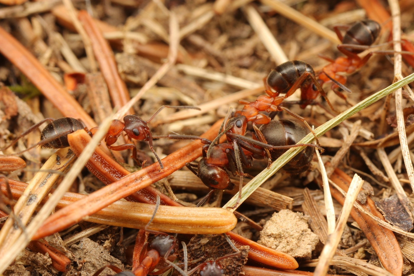 Ursptünglich dürfte die erhöhte Beißkraft mit der Nestbauweise zusammenhängen: Während Formica s. str. verschiedene Materialien zu einem Haufen zusammenträgt u. aufschichtet (z. B. Fichtennadeln), muss Coptoformica sich mit zerbissenen Grashalmen etc. als Baumaterial zufrieden geben, da sie auf Almen u. nicht im Wald oder an dessen unmittelbaren Rändern lebt.