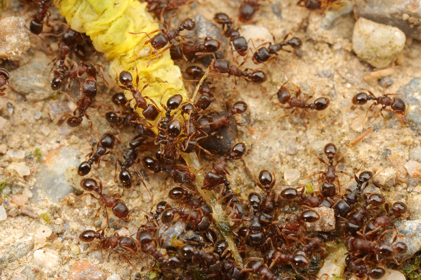 Aber während der Beobachtung der oben genannten Auseinandersetzung ist es bereits erschienen: das Recyclingteam, häufig dabei einige Myrmica- und Tetramorium-Arten. Fotos v. Roman Borovsky