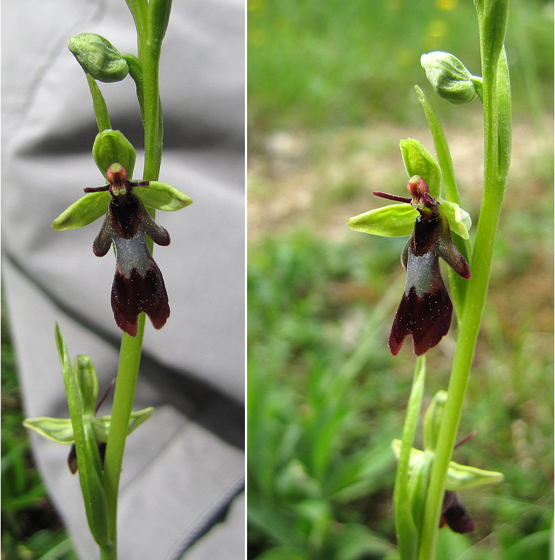 Die Fliegen-Ragwurz, Ophrys insectifera, ist noch unscheinbarer und schwer zu entdecken, wenn man nicht genau weiß,
