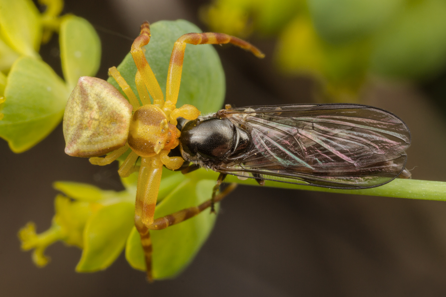 Krabbenspinne (Thomisidae) mit unbekanntem Opfer