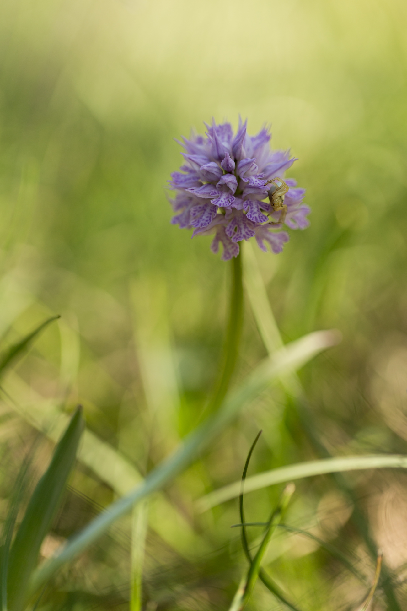 Dazwischen immer wieder bunte Wiesenblumen, hier vermutlich die Schopf-Kreuzblume (Polygala comosa)