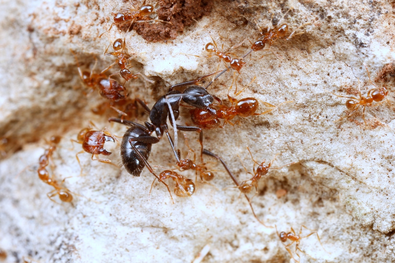 Ameisen sind in der Regel nun einmal Raptoren, Jäger und Räuber. Das inter- und intraspezifische Verhalten ist aber vielgestaltig: Von Flucht, Verstecken, sich totstellen bis zu Angriff, Bildung von Heereszügen und zur schonungslosen Vernichtung der Konkurrenten reicht das Spektrum. Dabei ist die Größe der Individuen oft nicht entscheidend, sehr wohl aber die Volksstärke. Auch Taktik spielt eine Rolle, von der "Überrumpelungstaktik" etwa bei Lasius niger, dem Vorrücken unter Bildung von Brückenköpfen (L. niger) bis zur stetigen Belagerung von Nesteingängen anderer Arten, die schließlich buchstäblich zum Verhungern der Nestinsassen führen kann (z. B. Formica spp. oder Serviformica fuscocinerea gegenüber Manica rubida u. a.)