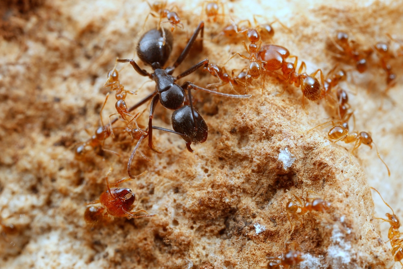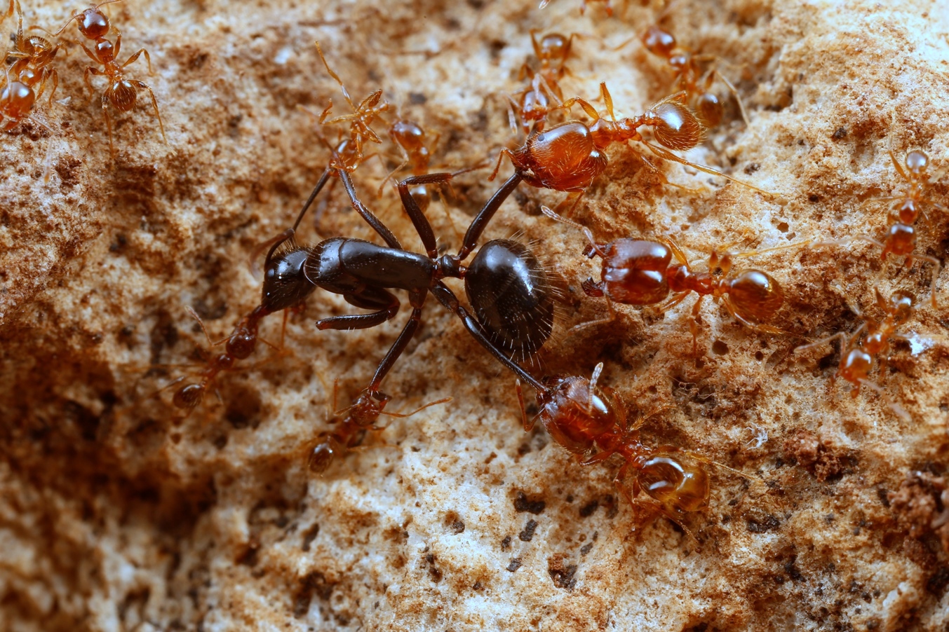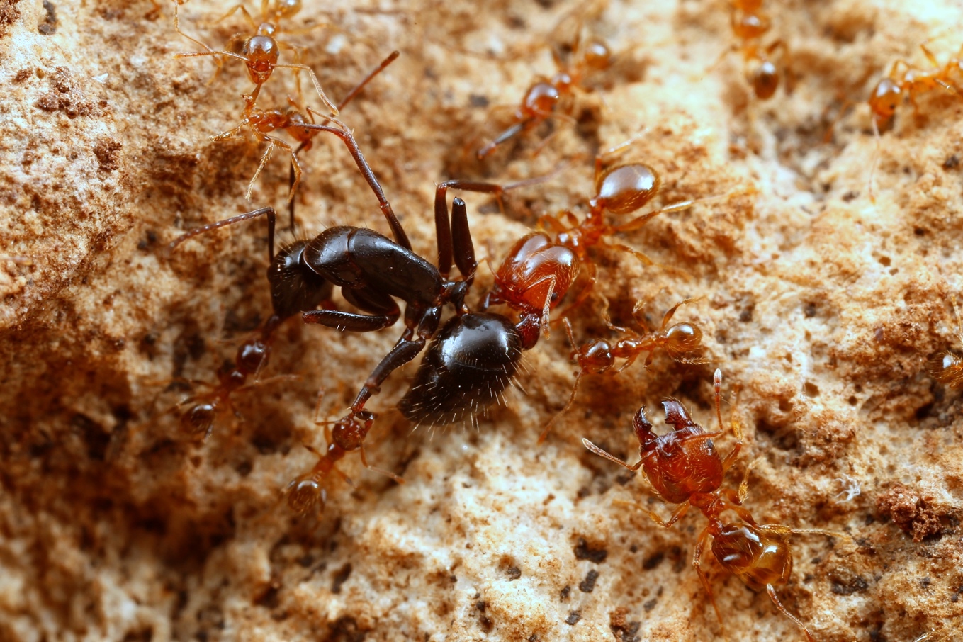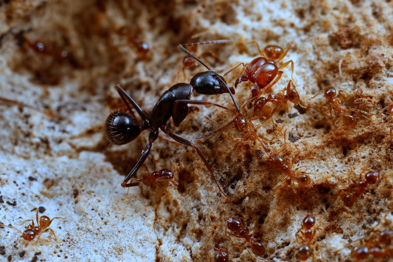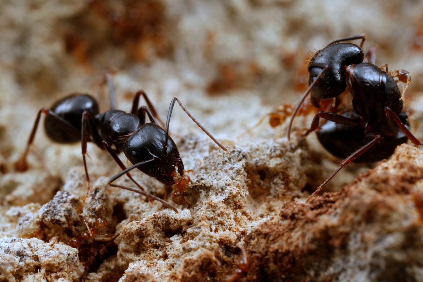 Die kleinen Arbeiterinnen v. Pheidole vermögen die großen Camponotus an den Beinen zu fixieren