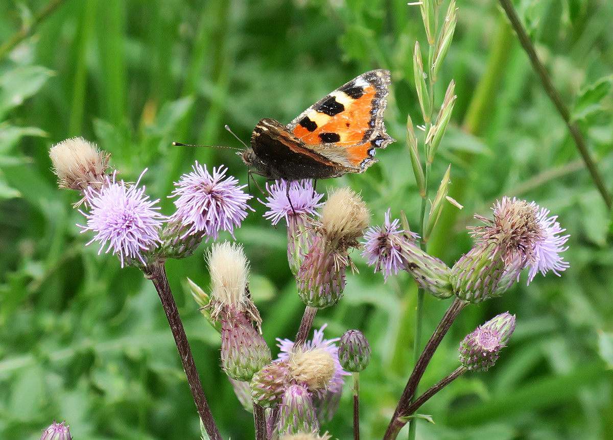Hier ein Kleiner Fuchs. Zu den zahlreichen Schmetterlingen an den Kratzdisteln habe ich gestern hier schon etwas geschrieben.