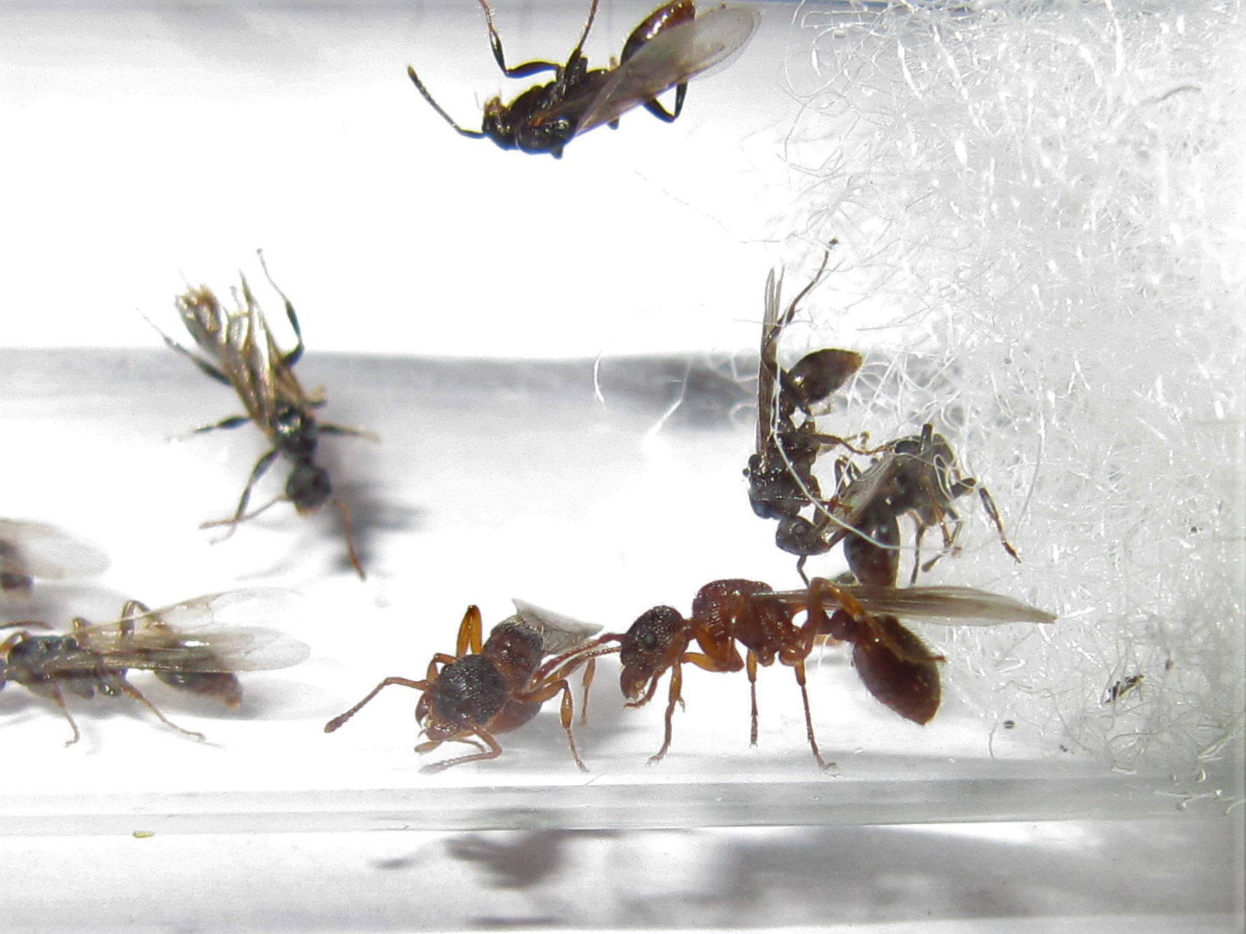 Vor Jahren ist mir einmal ein deutliches Schwärmen von Myrmecina graminicola auf und um eine Mülltonne aufgefallen. Möglicherweise hatte die Plastiktonne die richtige Temperatur.....