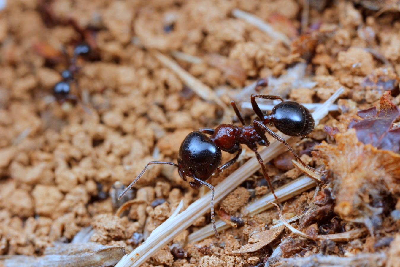 Aphaenogaster sp., eine sehr dunkel gefärbte Art, dunkelbraun-schwärzlich