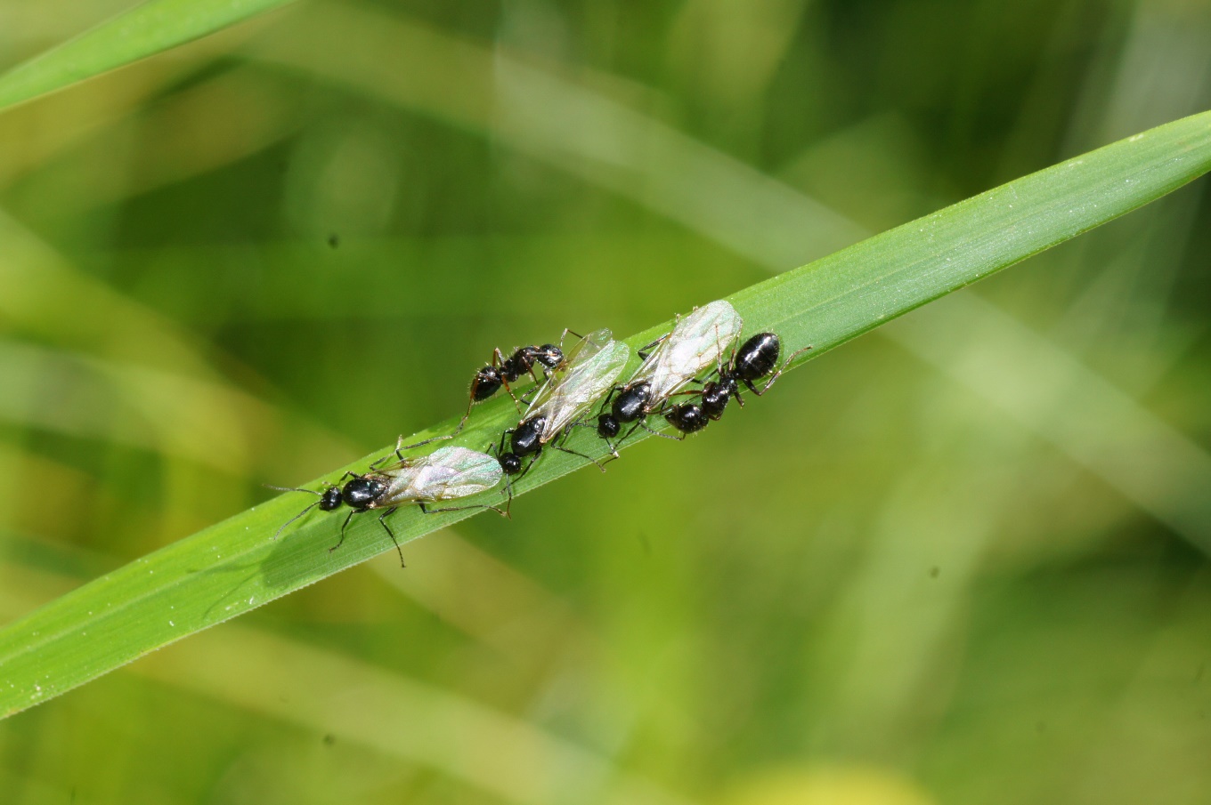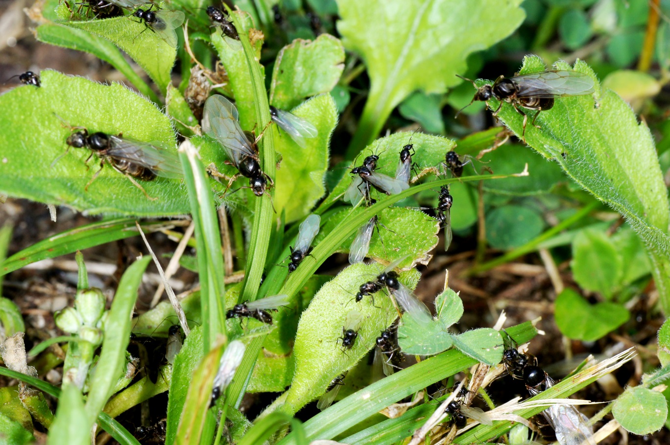 Bemerkung: Massenschwärmen, Gynen und Manchen überall auf dem Boden. Ein nest war gans actieve, eine breite Strasse vom Nest ins Grune, ein Meter weiter. Die Strasse war 12-15 Arbeiter breit und ging in beide Richtungen. Fast gans schwarz auf ein helle Bodem!!! Um 21:10 fast ganz weg.