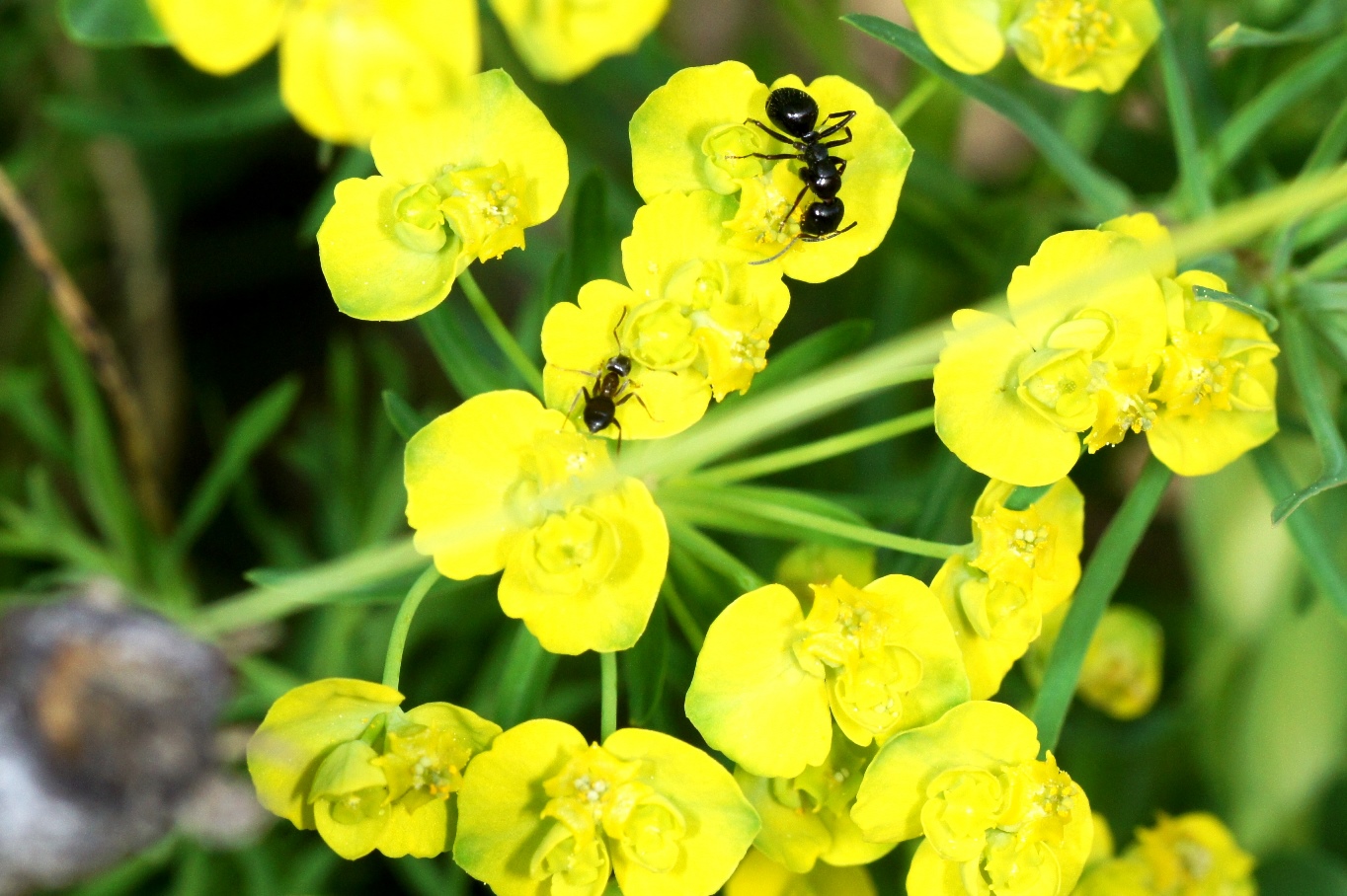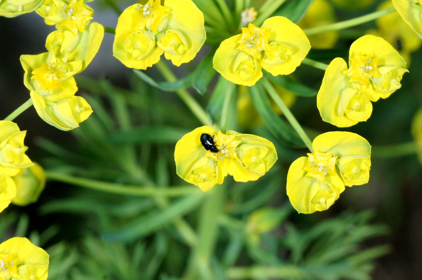Wolfsmilchgewächse (Euphorbiaceae) sind schön, aber giftig. Der Blütennektar einiger Arten ist bei Insekten sehr willkommen. Deswegen habe ich ein paar Pflanzen im Garten. Die Zypressen-Wolfsmilch tritt als "Unkraut" auf und verbreitet sich rasch, man kann sie aber auch leicht dezimieren. Ein kleiner Streifzug durch den Garten, vor allem den Steingarten, soll einen Eindruck vermitteln.