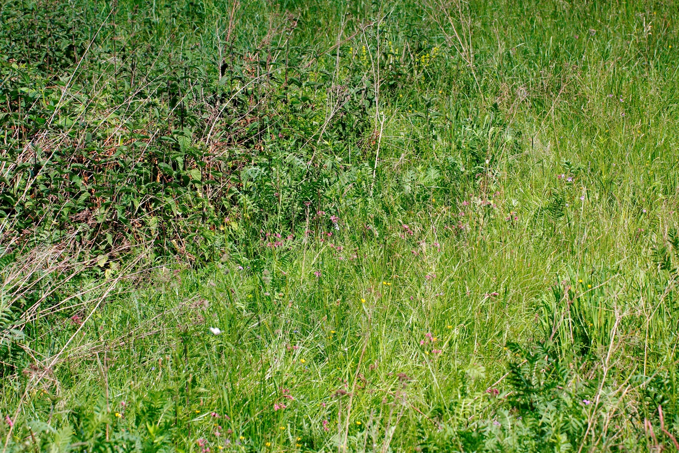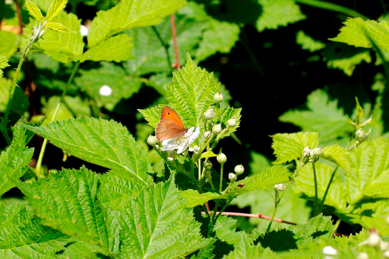 Die schon vor vielen Jahren gelichteten Waldränder mit den Hochstaudenfluren entwickeln sich prächtig, für die Natur ist das in diesen Zonen eine Erholungsphase. Dazu kommen mehrere Tümpel und ein größerer Teich mit Ufervegetation und Auwaldbereichen. Neben umfangreichen Brennesselfluren konnten im Vorbeigehen Wasserdost, Ziest, Giersch und Brombeergebüsch beobachtet werden.