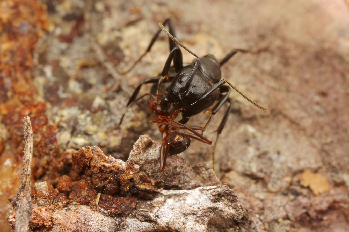 C. vagus, gerade mit einer Waldameise "beschäftigt" (Raptiformica sanguinea)