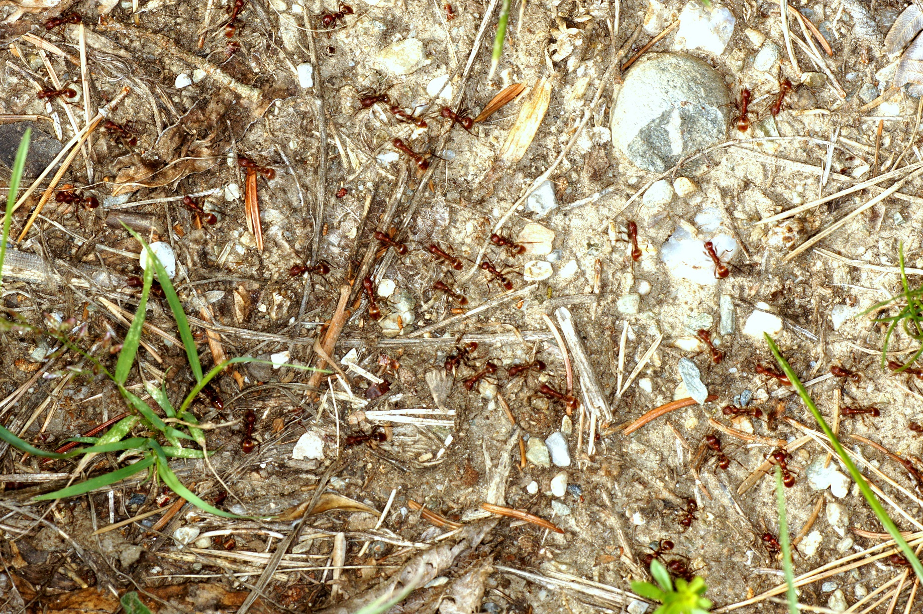 Die Amazonenameise Polyergus rufescens hat heuer witterungsbedingt 1-2 Wochen später mit den Raubzügen begonnen. Zuletzt haben wir 1 Woche wegen kühlen Wetters "verloren", gestern war wieder der erste durchgehend schöne Tag. Die Raubzüge der Amazonen enden bei uns in den ersten Septembertagen, den spätesten Zug habe ich vor Jahren an einem 07.09. beobachtet. Nach der Wettervorhersage bleiben noch ein paar Tage, dann ist Schluss für 2021, die Amazonen ziehen sich in tiefere Regionen der Nester zurück und bereiten sich auf die Winterruhe vor.