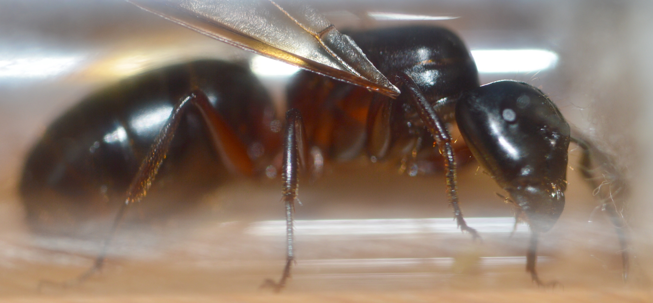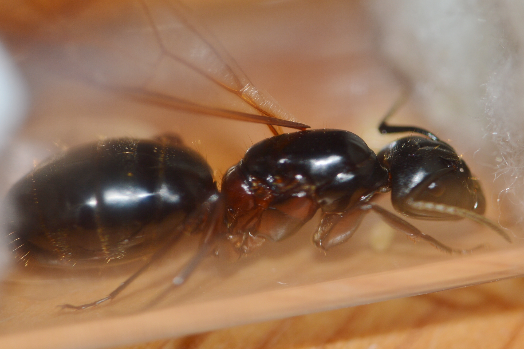 Bemerkung: Eine entflügelte Gyne von C. herculeanus, sichtlich gerade gelandet und auf der Suche nach einer Gelegenheit zur Koloniegründung.
