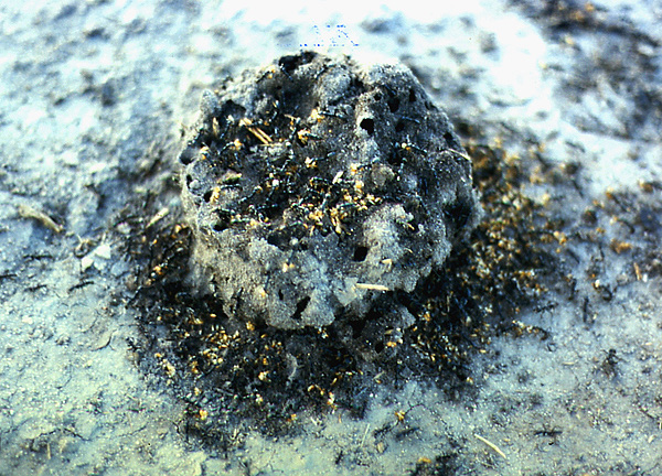 Von dem andernorts ausgegrabenen Nest habe ich einige Dutzend Tiere lebend mitgenommen. Sie mussten immer im Auto übernachten, und für die Heimreise konnte ich sie dank des aufdringlichen Dufts auch nicht mit in die Kabine nehmen, musste sie im Gepäck aufgeben. Im Frachtraum wurden sie wohl doch ziemlich gekühlt, was zu Hause einige Opfer forderte. Immerhin blieben genügend Tiere am Leben, so dass noch ein paar Beobachtungen und Fotos möglich waren, und vor allem, dass ich meine Studenten mit dem olfaktorischen Erlebnis beeindrucken konnte.