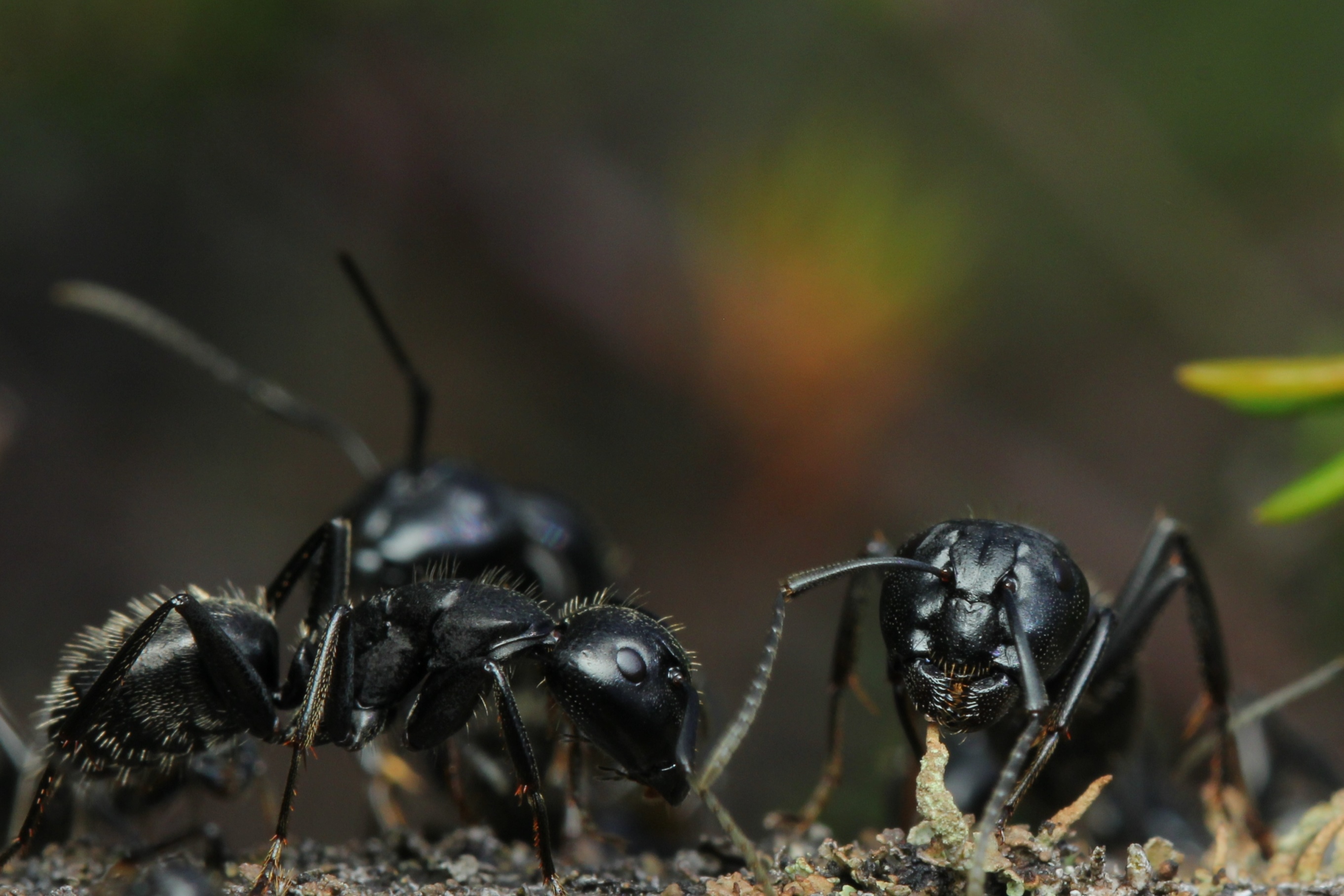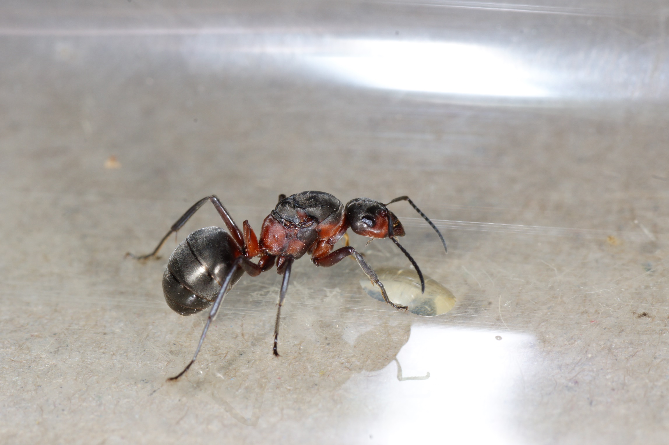 Camponotus vagus schwärmt im April/Mai. Die Art ist aber in vielen Teilen Deutschlands sehr selten od. verschollen. Neben der Major-Arbeiterin eine Gyne, links dahinter schemenhaft eine weitere Gyne.