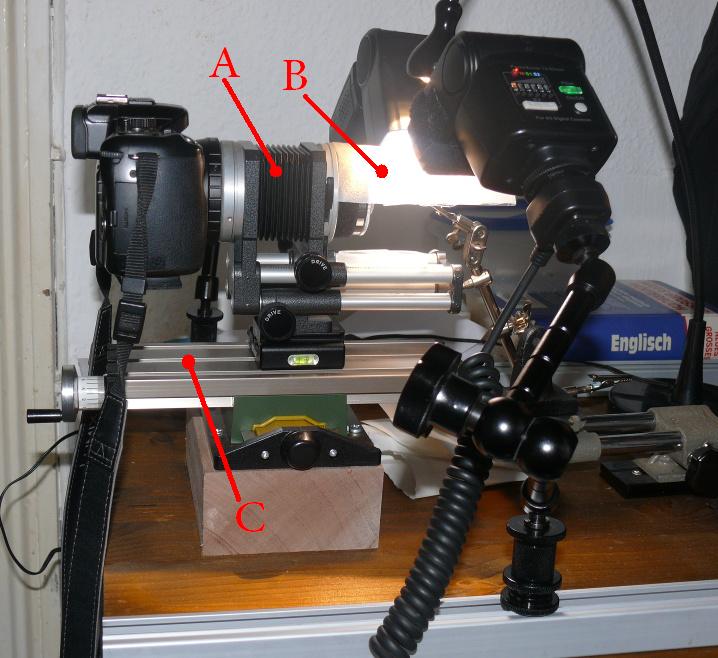 Hier ein Foto von meinem Aufbau für das Focus Stacking-Verfahren(http://de.wikipedia.org/wiki/Focus_stacking).